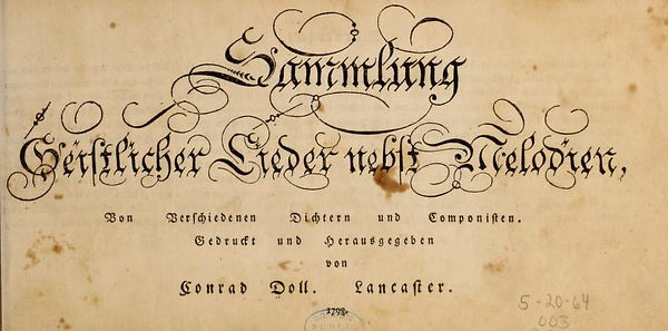 "Sammlung Geistliche Lieder nebst Melodien," printed and published by Conrad Doll, Lancaster, Pa., 1798, 112 p. 12